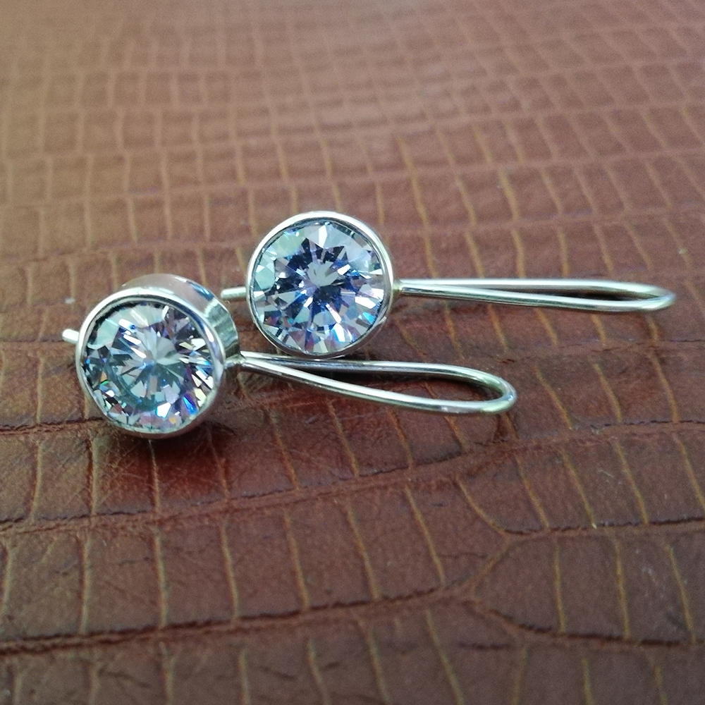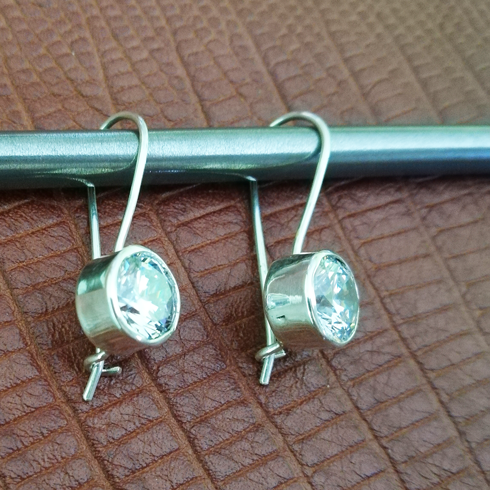 Silberohrringe mit leuchtenden weißen Zirkoniasteinen.